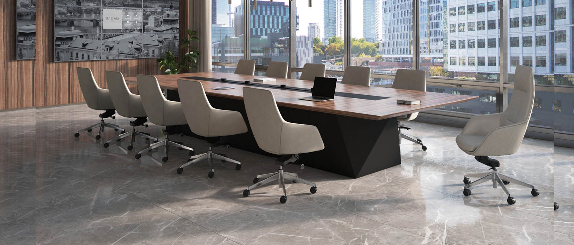 如何挑選最好的會(huì)議室桌椅設(shè)計(jì)會(huì)議室的關(guān)鍵在于舒適性和功能性。畢竟,您可能會(huì)在房間里花費(fèi)一到四個(gè)小時(shí)來(lái)參加重要的協(xié)作會(huì)議或董事會(huì)會(huì)議。因此,選擇合適的會(huì)議桌椅以使您、您的團(tuán)隊(duì)和任何客戶在空間中感到舒適至關(guān)重要。 -